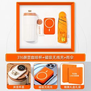316 スクリーン ディスプレイ コーヒー カップ + 頸椎メーター + 磁気パワーバンク - オレンジ