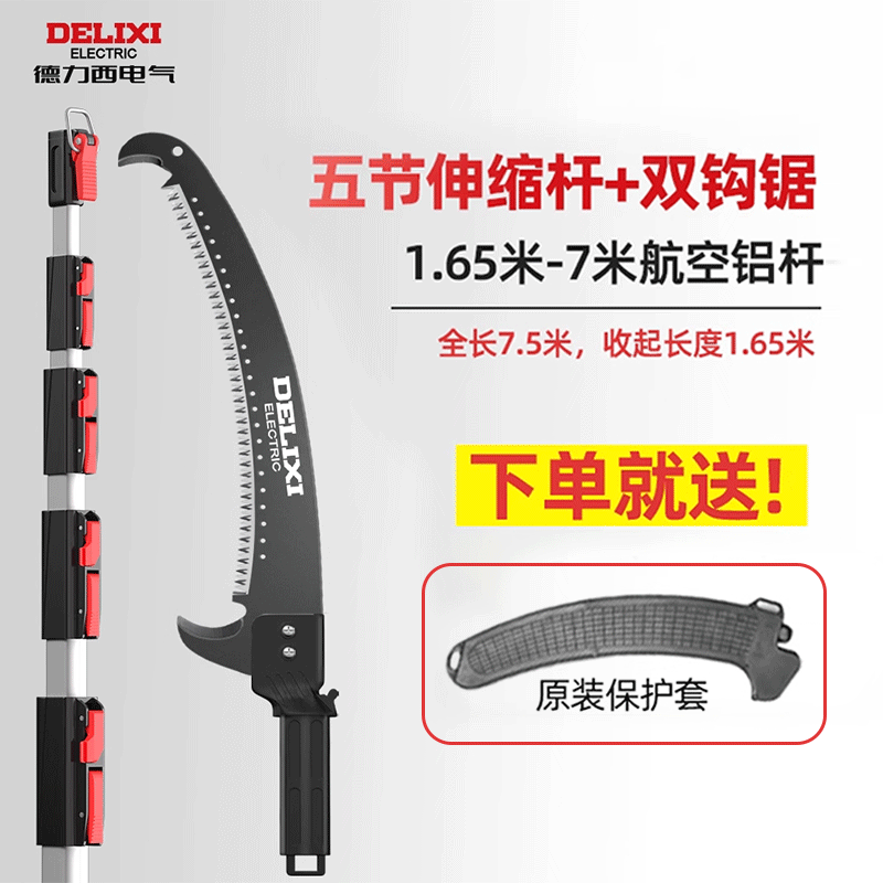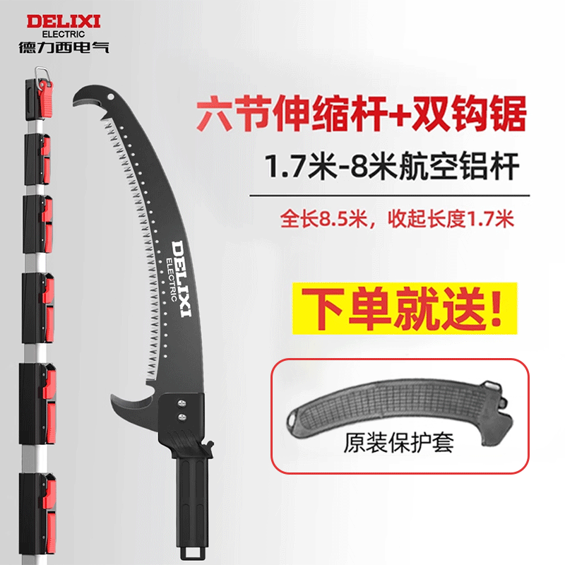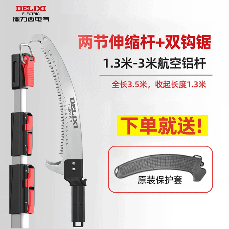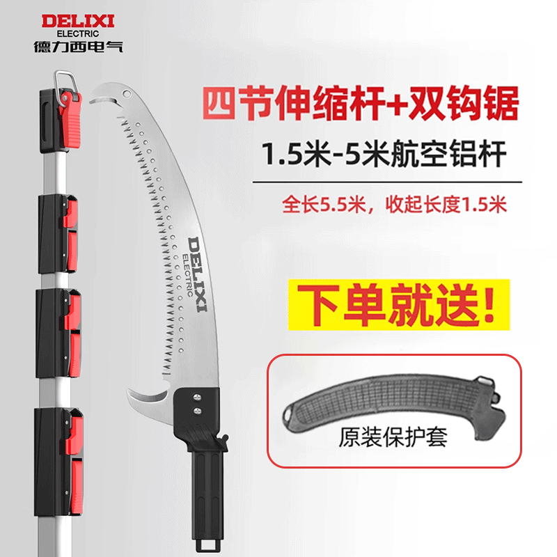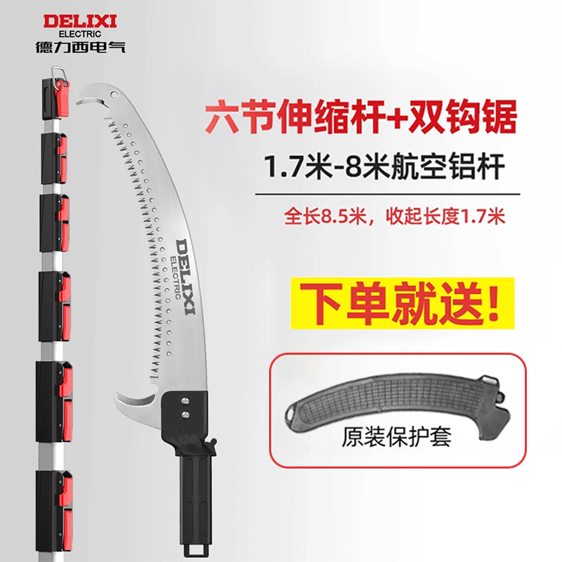 Delixi 電気高枝鋸、庭果樹剪定鋸、ステンレス伸縮ロッド、高枝鋸