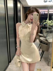 夏のハイエンドセレブヘビーデューティーレースノースリーブプリンセスドレス高貴で軽い高級オフショルダースリムドレス女性用