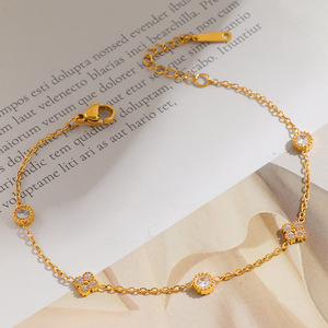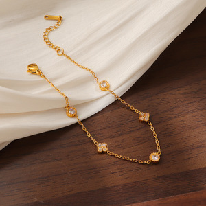 日本と韓国のシンプルなフラワーサークルジルコンブレスレットライト高級絶妙な女性チタン鋼ブレスレットメッキ18kゴールドニッチデザイン
