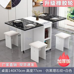 折叠餐桌家用可移动小户型多功能一桌四凳长方形桌子