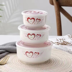 陶器製鮮度保持ボウル 3点セット 蓋付き 弁当箱 密閉鮮度保持ボックス 電子レンジ対応 学生用 大型インスタントラーメン弁当箱