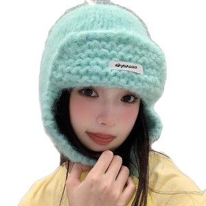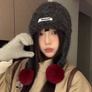 韩系可爱毛球针织护耳帽子女秋冬新款保暖防寒包头帽显脸小毛线帽