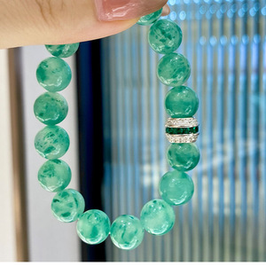 天然非洲翠珠串手链女10mm高冰飘花独龙玉珠珠手串国风百搭极简风