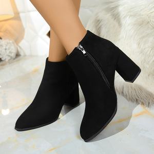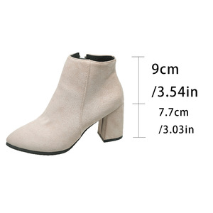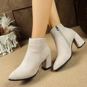 短靴女靴子秋冬爆款高跟鞋外贸现货尖头马丁靴粗跟侧拉链时装靴