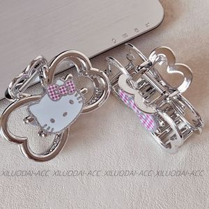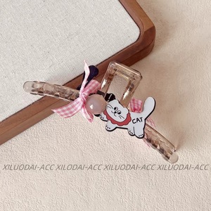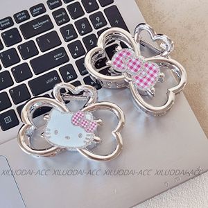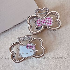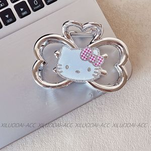 キラキラKT!ガールAB面猫クリップ、高級シルバーリボンシャーククリップ、後頭部ヘアクリップ