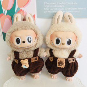 ソースメーカー 17 センチメートルビニールぬいぐるみ服ラブ布ペンダントコーヒー色のオーバーオール衣類アクセサリー遊び
