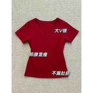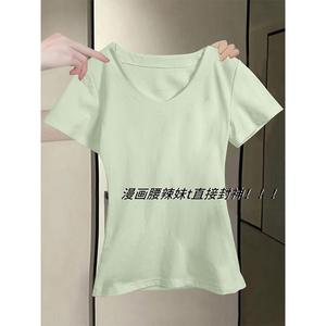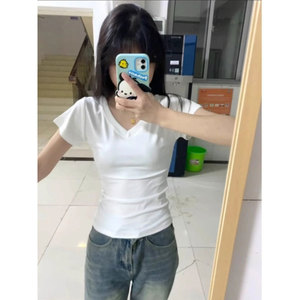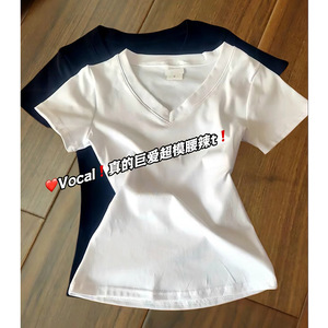 ホワイト V ネック半袖 T シャツ女性の夏のショルダースリムフィット純粋な欲望ホットガール着用トップ無地
