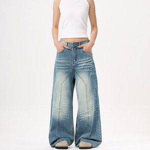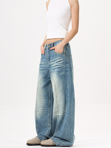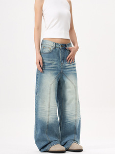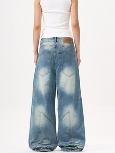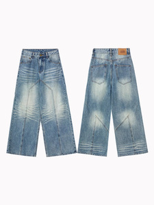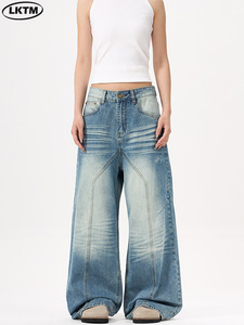 LKTM男装 美式设计感水波纹猫须牛仔裤男女潮牌宽松立体A字直筒裤