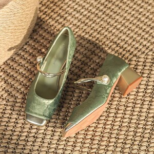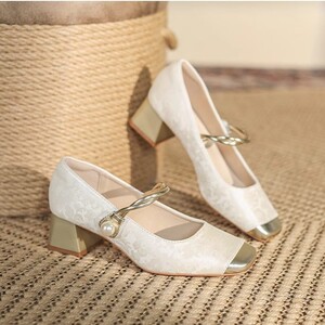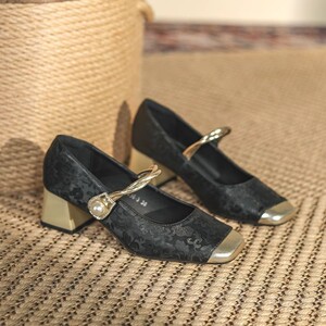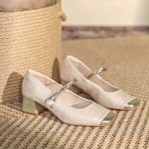 新中式国风配旗袍方头粗跟单鞋女2025年春季新款复古玛丽珍高跟鞋