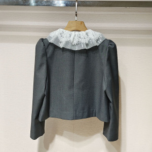 1件起批2025秋女装XRJ4W14D蕾丝拼接领千金风丝绒长袖外套S250555