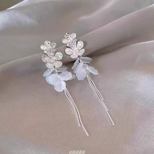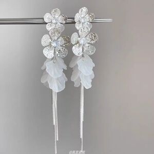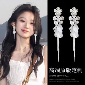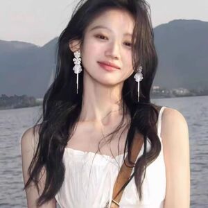 ジルコンフラワーシェル海辺リゾートスタイルタッセルロングイヤリング女性の四角顔と丸顔イヤリング 2025 新しいハイエンド