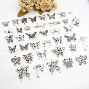 古银色蝴蝶蝴蝶结镂空吊坠diy手链手串挂件项链饰品配件批发