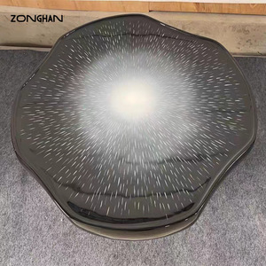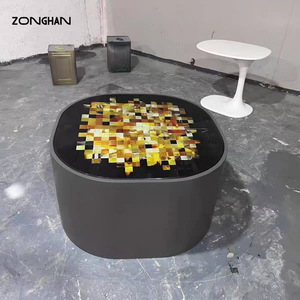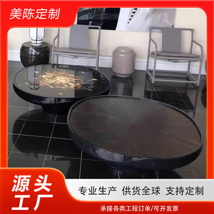 モダンな軽奢風塗装ガラス繊維強化プラスチック製ティーテーブル、アートペイント入り円形ティーテーブル、ホテルのリビングルーム、モデルルーム、商談用テーブル
