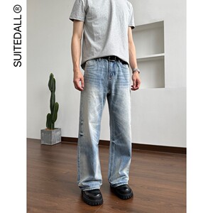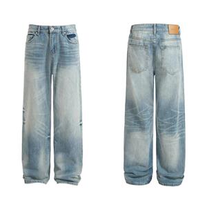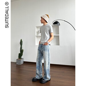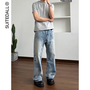 奶油蓝宽松直筒软牛仔裤 百搭休闲长裤潮流