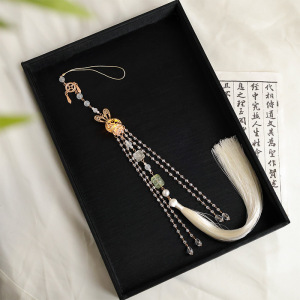 古代風漢服ペンダント、チャイナドレス、襟、馬面、発光ウサギ耳タッセルペンダント、腰飾りアクセサリー