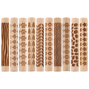 陶艺工具木质肌理棒泥滚压花纹擀泥杖陶泥手工DIY多种花纹雪花印