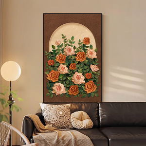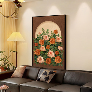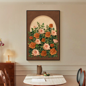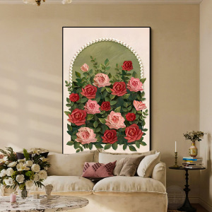 奶油风客厅装饰画欧式古典花团锦簇玫瑰花艺术感卧室装饰帆布画