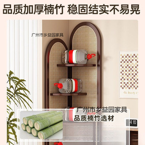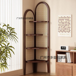 复古三转角柜客厅墙拐角收纳展示置物卧室非实木藤编储物沙发边几