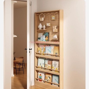 収納ラック無垢材穴あきボード収納ラック狭い隙間ドア後ろの小さなアパート本棚薄型キャビネット壁掛け多層絵本ラック