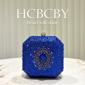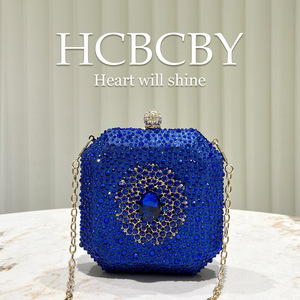 ブルーの光沢のあるラインストーンのハイエンドダイヤモンドバックル装飾的な小さなハンドバッグレディースファッションパーソナライズされたミニボックス型イブニングバッグ