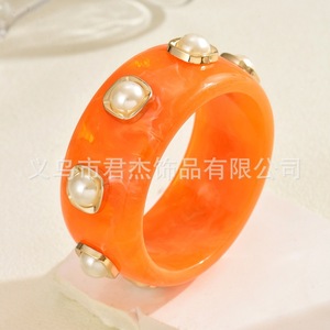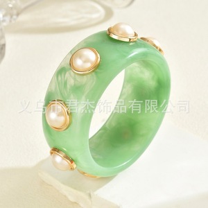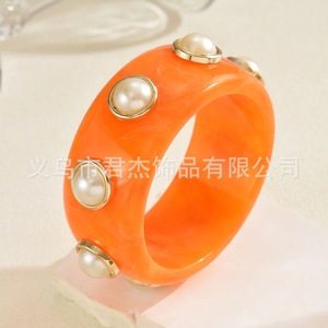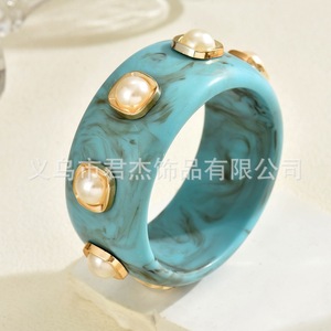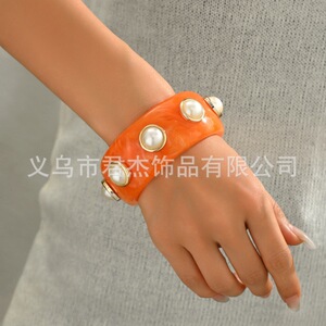 欧美时尚个性树脂粘爱心方形珍珠手镯设计感多色晕染树脂手环手饰