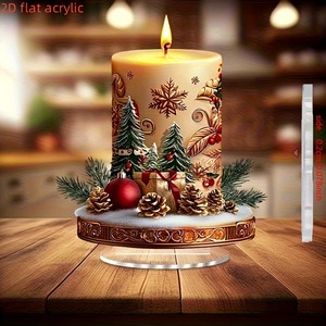 跨境2D平面亚克力水晶圣诞烛台 -家居办公室书店优雅节日桌面摆件