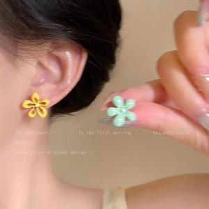 ドーパミンフレッシュコントラストカラー油滴幾何学的な愛のイヤリング女性のためのかわいい甘い花のイヤリング