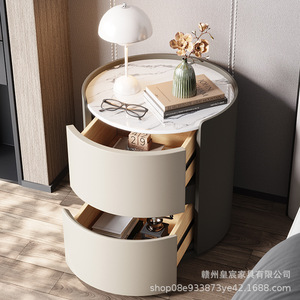ラウンドベッドサイドテーブルイタリアのミニマリストライト高級ロックプレートベッドサイドテーブルハイエンドシンプルモダン無垢材寝室収納