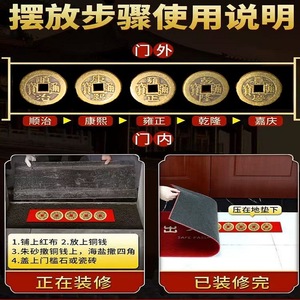 五帝のお金が玄関の敷居を押して、出入りが安全に保たれるように、本物の純真鍮の厚い銅貨が敷居の下に置かれています。
