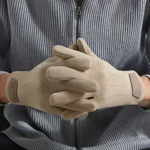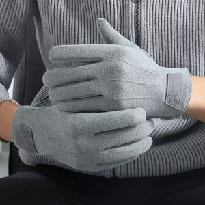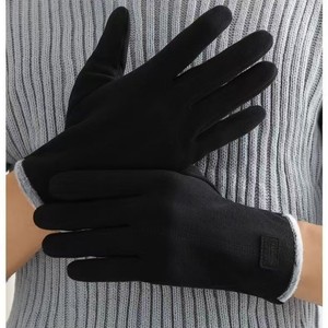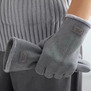 秋冬季新款皮标男士加绒德绒户外运动开车骑行分指触屏手套批发