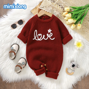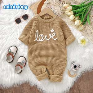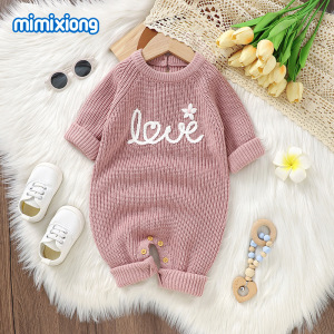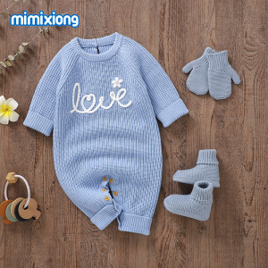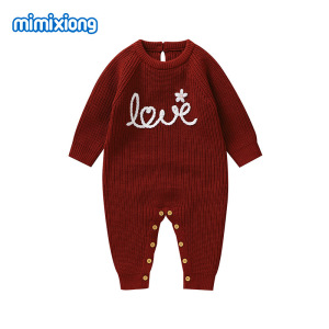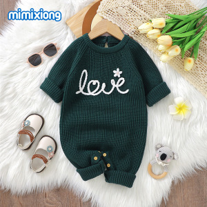 インホット販売春、秋、冬の新しいベビーニット刺繍ジャカードクラフト無地ワンピースロンパース