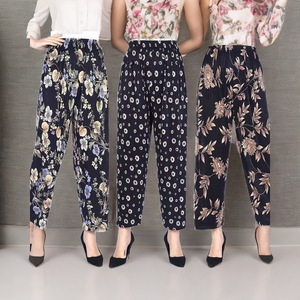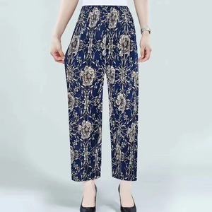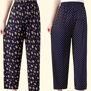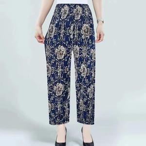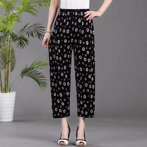 夏軽量通気性アイスシルククロップドパンツママパンツストレートカジュアルパンツ中高年向け 45-75kg メープルリーフ