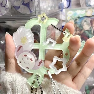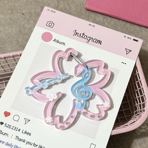 ピンクの中空花音符と四つ葉のクローバー絶妙な登山キーホルダースタイルアクリルキーホルダーカラビナ