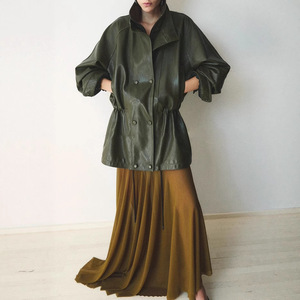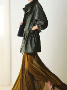 真皮皮衣HN5201秋冬欧美风轻蜡感植鞣羊皮抽绳休闲街头短风衣外套