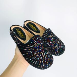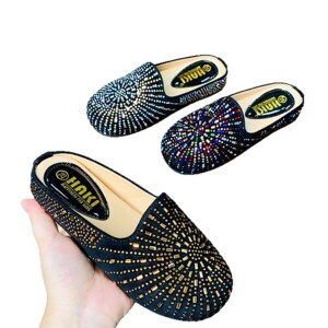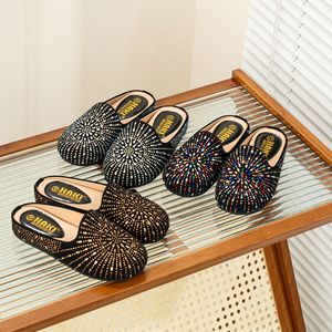 クロスボーダー 2025 夏ラインストーンラウンドトゥワンストラップファッションヨーロッパとアメリカンスタイルのつま先オープンバック女性の厚底スリッパサンダル