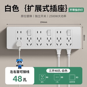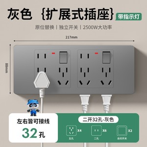 扩展插座86型转换拓展式插座原位替换插排上墙多孔带开关家用排插