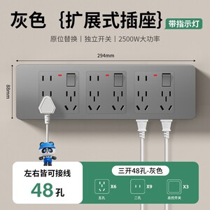 三开48孔-灰色带灯【升级第3代】任意扩展