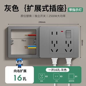 一开16孔-灰色带灯【升级第3代】向右扩展