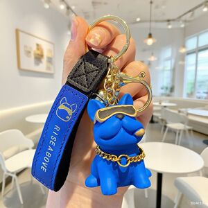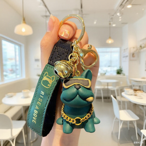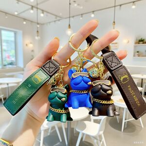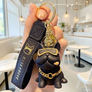漫画風樹脂製ブルドッグキーホルダー、クリエイティブなサングラスをかけた犬のフィギュアキーチェーン、カップルバッグの飾り、車の飾り