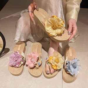 2025 新しい花夏のスリッパファッション西双版納厚底ダイフリップフロップビーチシューズノンスリップ送料無料