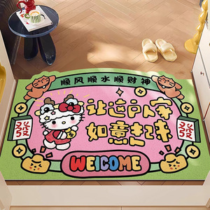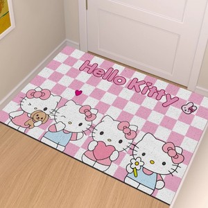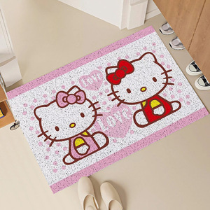 ハローキティワイヤーリング玄関ドアマット、お手入れ簡単、カット可能なPVC滑り止めフロアマット、汚れ防止、耐摩耗性、防塵フットマット