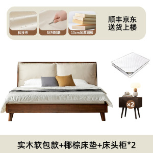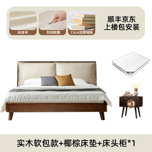 オーク材ベッド + 10cm ココヤシマットレス + ベッドサイドテーブル * 2 (2 階 + 設置を含む)