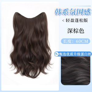 女性用ロングヘア用ウィッグ、ワンピース、大きなウェーブ、長い巻き毛、増毛、ふわふわ、軽くてシームレスな人工毛エクステンション