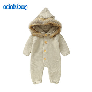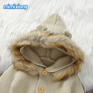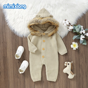 ins热卖春秋冬季新款婴儿宝宝连体连帽毛领连体哈衣爬服