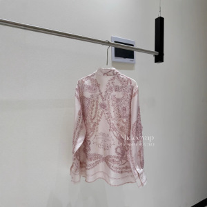 乔二 2025新款重磅定位印花斜纹绸仿真丝衬衫女设计感小众上衣女