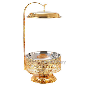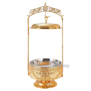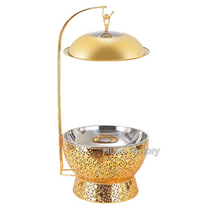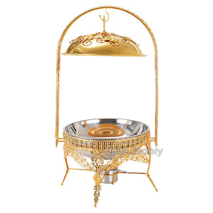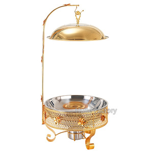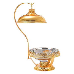ステンレス鋼ビュッフェストーブゴールデンレース高級アルコールストーブラウンド吊り蓋ホテルレストランライト高級アイアンダイニングストーブ