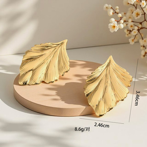 ヨーロッパとアメリカのニッチな気質ライト高級レトロプリーツイヤリング女性用 18K ゴールドストライプ三角形イヤリング