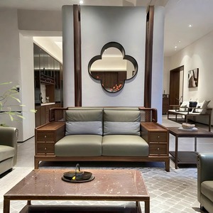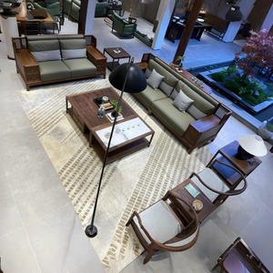 北米産ブラックウォールナットの新しい中国風無垢材ソファ組み合わせ新しい豪華でシンプルな大型ソファヴィラリビングルーム家具