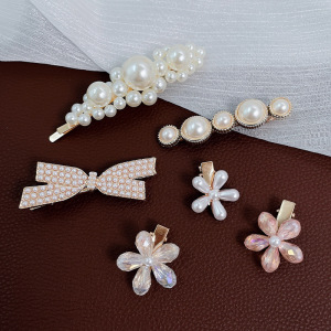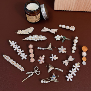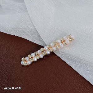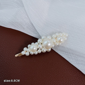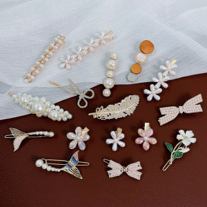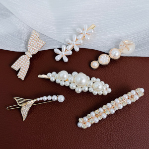 韓国風ネットセレブパールヘアピン、レディースダックビルクリップ、サイドバング用ワンワードクリップ、インスタ風おしゃれヘアアクセサリー、高級感ヘアピン